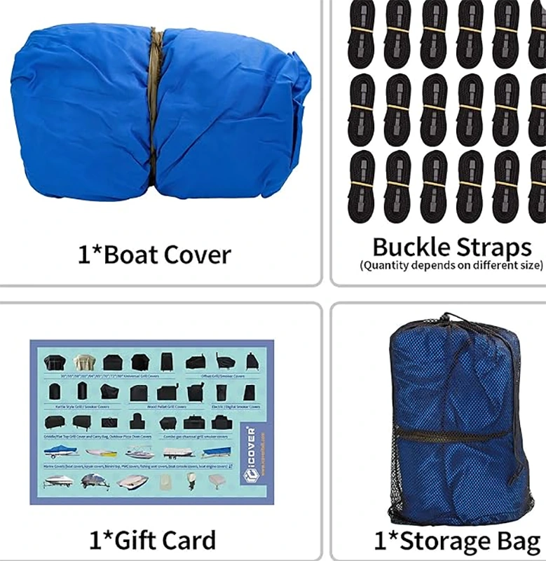 Nurning kengligi suv o'tkazmaydigan qayiq qopqog'i, yaxta qopqog'i, tirkama qayiq qopqog'i, 600D og'ir qayiq qopqog'i V-Hull markaziy konsol qayig'iga mos keladi 20 fut-22 fut uzunlik va nur kengligi 116 dyuymgacha, old oyna balandligi 30 dyuymgacha, qayiq qopqog'ini qo'llab-quvvatlash ustuni kiradi.