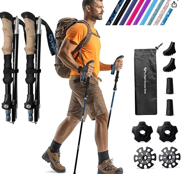 Ko'krak qafasi yiqilib ketadigan poyabza. Backpacking, mashq qilish va sayohat qilish uchun tez yurish, 2 alyuminiy shimoliy shimoliy nordik shamol qutblari to'plami