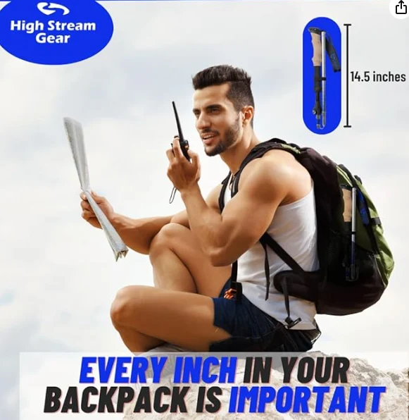 Xayerlar uchun sayohat qutblari 37 sm (14,5 dyuym) va vazni faqat 10 untsiya, har biringiz keraksiz va shaxsiy asboblar uchun bo'shashasiz.