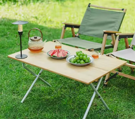 Qattiq, baquvvat, baquvvat va ekologik jihatdan tozalangan katlama portativ bambuk va alyuminiy stol. Va samarali suv o'tkazmaydigan. Silliq tlanming ichimliklar, atıştırmalık yoki pishirish uskunalarini joylashtirish uchun juda mos keladi.