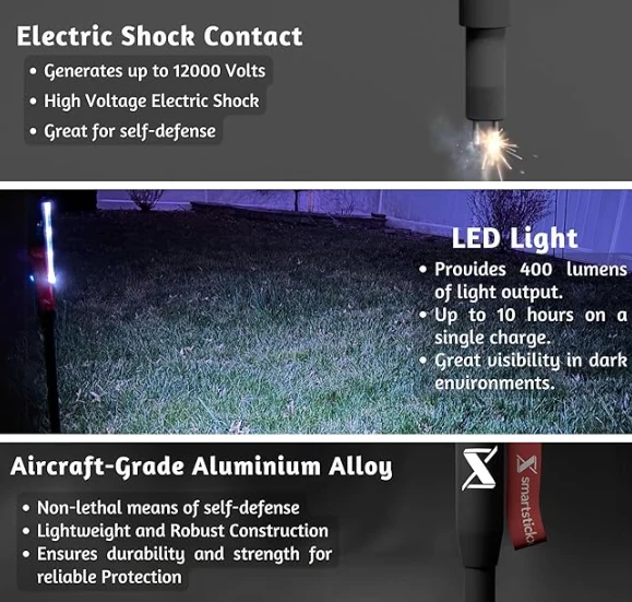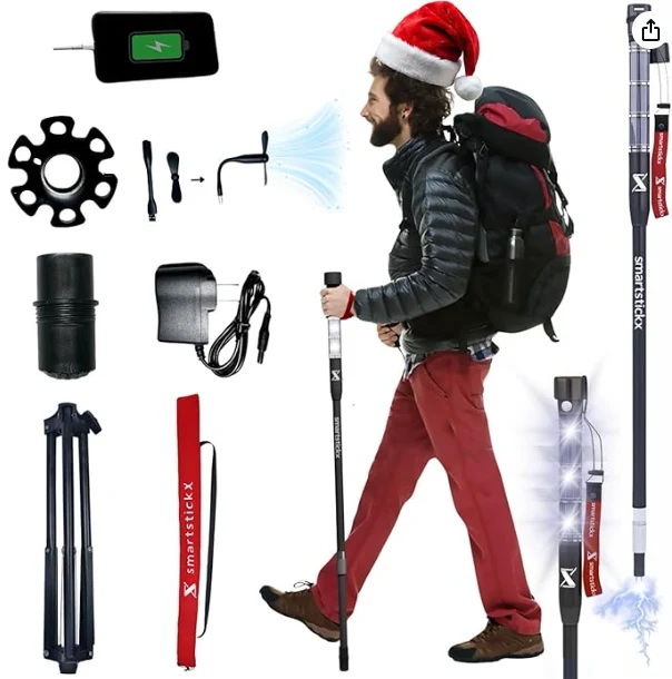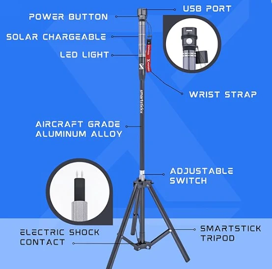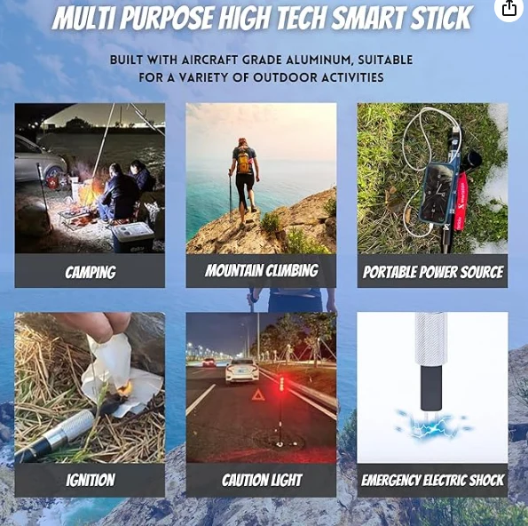 LED yoritgichli Trekking qutbli qutbli qutbli treking qutbli va yashash joyi va omon qolishning eng xavfli tashqi faoliyatida o'zini mudofaa qilish tayoqchasi.