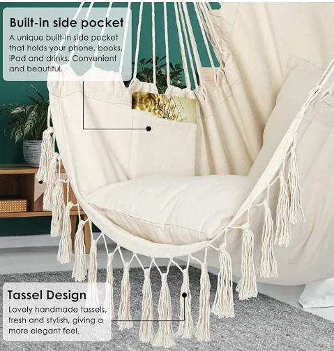 Parashutni parashut bilan tikish bilan bir marta osilgan, har qanday joyda uni osib qo'yadi. Faqat filial, nur yoki Hamkoram ramkani toping, tashqi tomondan yoki ichkarida. Xonalar dekoratsiyasi, balkonlar, hovli va bog'lar kabi yotoq xonalarida foydalanish juda mos keladi. Agar sizga qaytish kerak bo'lsa, tegni chayqaladigan stuldan olib tashlamang