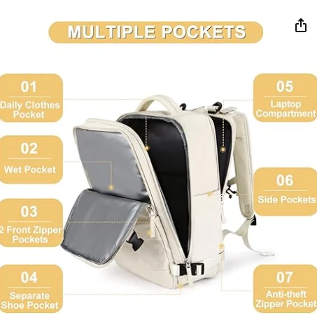 Uniseks suv o'tkazmaydigan ruchka. Chamadonni osonlashtirish uchun chamadonning trolleyasida sirpanish kerak. O'g'irlikning orqa qismini o'g'irlashning oldini olish uchun sumkaning orqa tomonidagi yashirin vatupta cho'ntaklar. E'tibor bering, sumka elektr banki va ma'lumotlar kabeli bilan kelmaydi, bu faqat uyali telefonni zaryadlash qulayligi uchun.